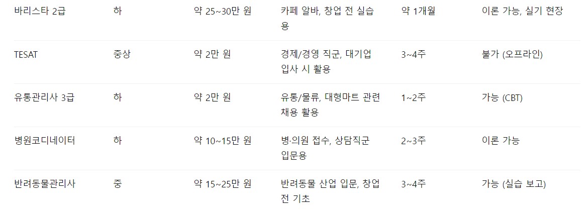 요즘처럼 시간이 귀한 시대엔 '빠르게 취득 가능한 실속 자격증'이 큰 관심을 받고 있어요.